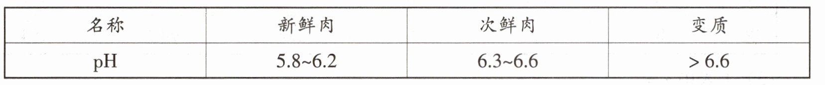 10. 肉类的新鲜度可以通过测试$pH$来判断。有资料显示,$pH$与肉类新鲜度的关系如表,则新鲜肉在变质过程中酸性如何变化 ( )