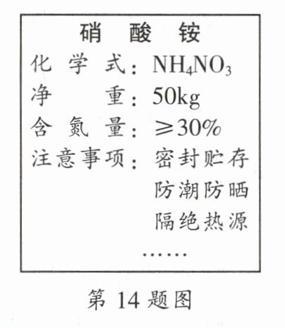 13. $NH_{4}NO_{3}$是一种化学肥料,某$NH_{4}NO_{3}$溶液的pH = 4。以下说法错误的是( )