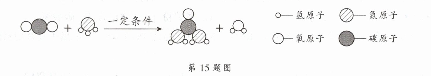 15. 1828年维勒通过加热氰酸铵得到了尿素[化学式为$CO(NH_{2})_{2}$]。尿素是第一种在生物体外合成的有机物,目前工艺有很大改进。某合成尿素的反应微观示意图如下。