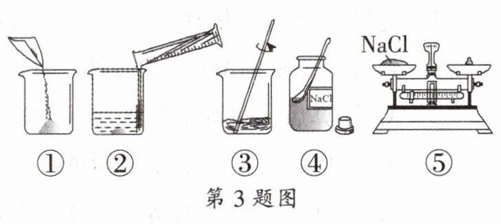 3. 配制一定溶质质量分数的氯化钠溶液的一些操作步骤见右图。正确的操作顺序是 ( )