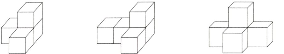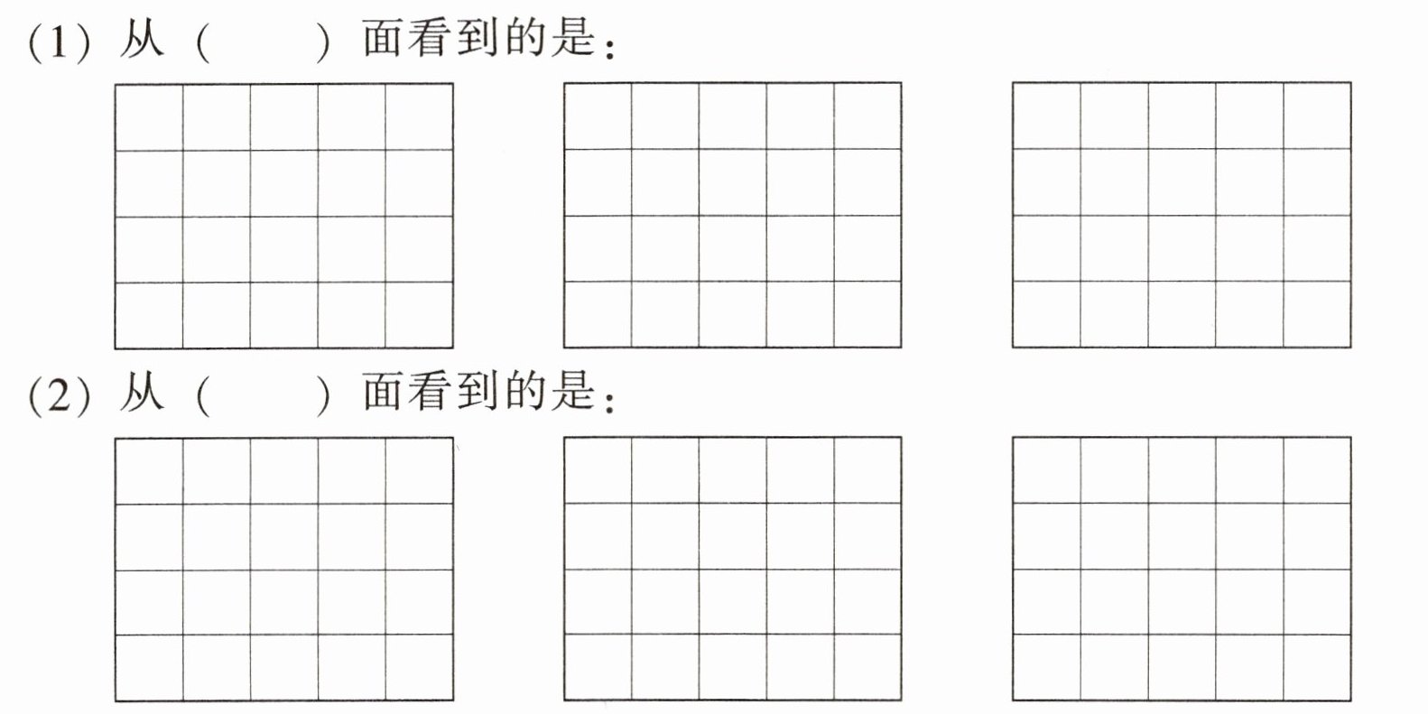 这3个物体,从( )面看到的图形是各不同的,从( )面看到的图形也是各不同的,请分别画出3个物体从这两个面看到的图形的样子。