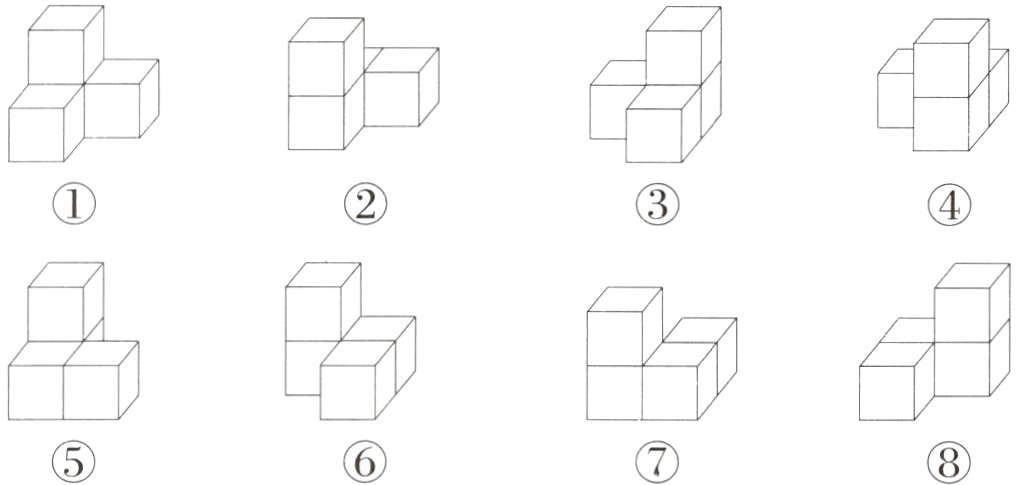 2. 下面是用小正方体搭建的一些几何体。