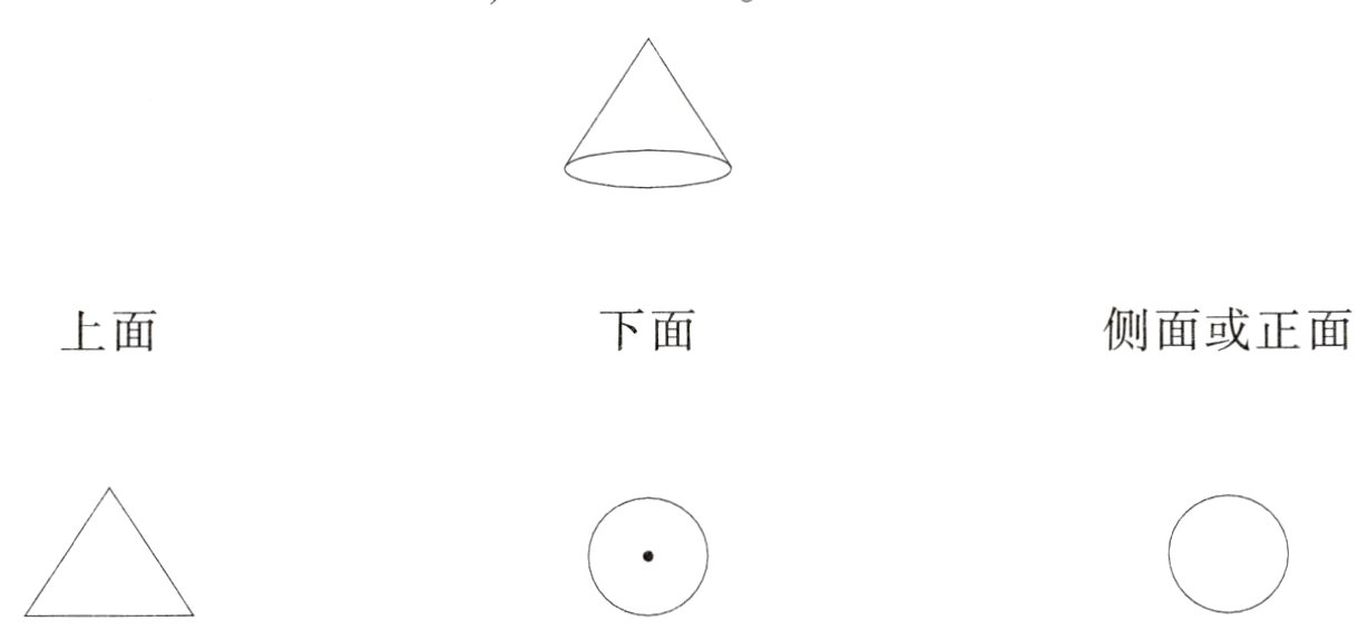 1.从不同方向观察圆锥,然后连线