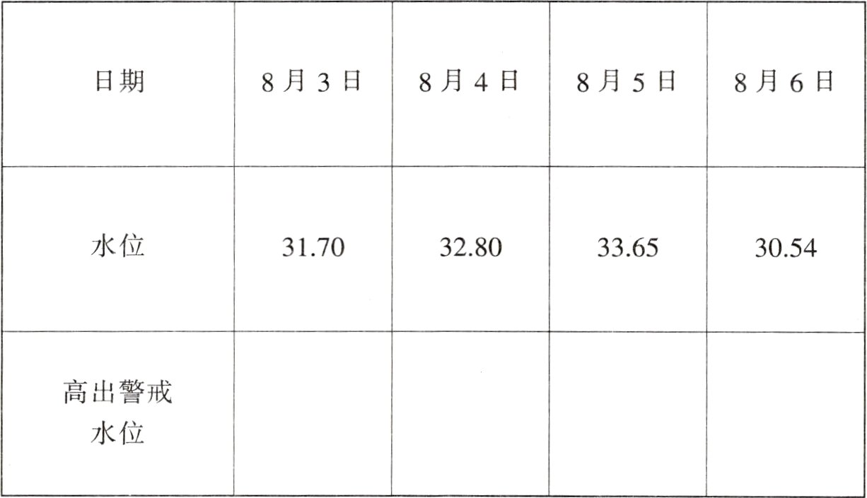 2. 某市水位站发布的8月3日至6日期间每天下午4时的汛情公告情况如下。