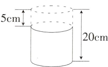 4. 如图所示,一个圆柱被截去5cm,圆柱的表面积减少了31.4cm²。原来圆柱的体积是多少立方厘米?