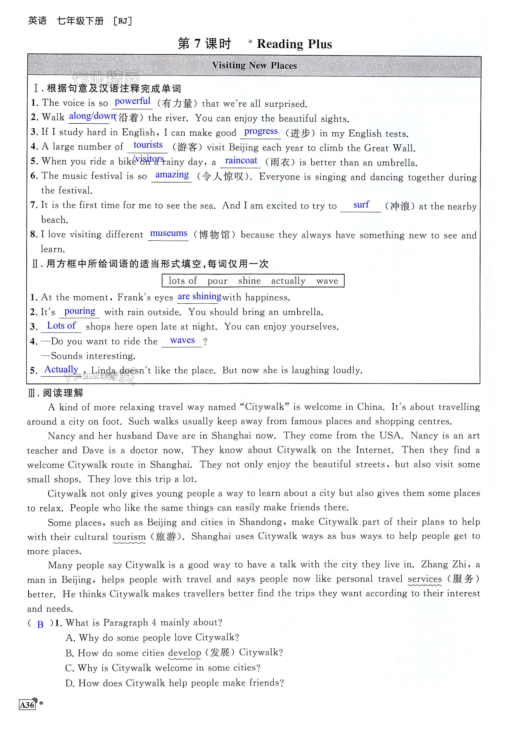 注:目前有些书本章节名称可能整理的还不是很完善,但都是按照顺序排列的,请同学们按照顺序仔细查找。练习册 2025年全效学习七年级英语下册人教版 答案主要是用来给同学们做完题方便对答案用的,请勿直接抄袭。