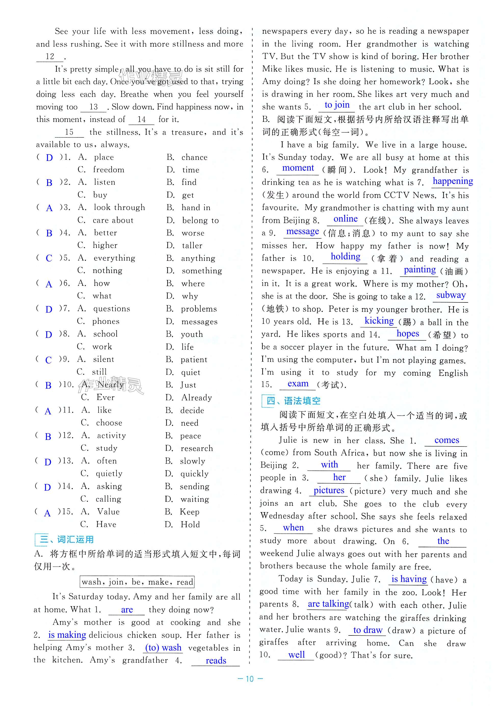 注:目前有些书本章节名称可能整理的还不是很完善,但都是按照顺序排列的,请同学们按照顺序仔细查找。练习册 2025年精彩练习就练这一本七年级英语下册人教版浙江专版 答案主要是用来给同学们做完题方便对答案用的,请勿直接抄袭。