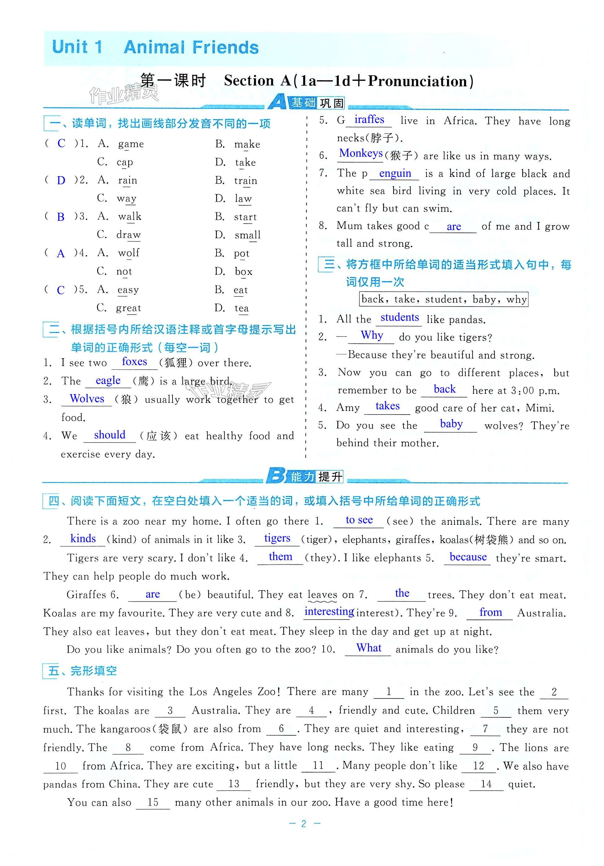 注:目前有些书本章节名称可能整理的还不是很完善,但都是按照顺序排列的,请同学们按照顺序仔细查找。练习册 2025年精彩练习就练这一本七年级英语下册人教版浙江专版 答案主要是用来给同学们做完题方便对答案用的,请勿直接抄袭。