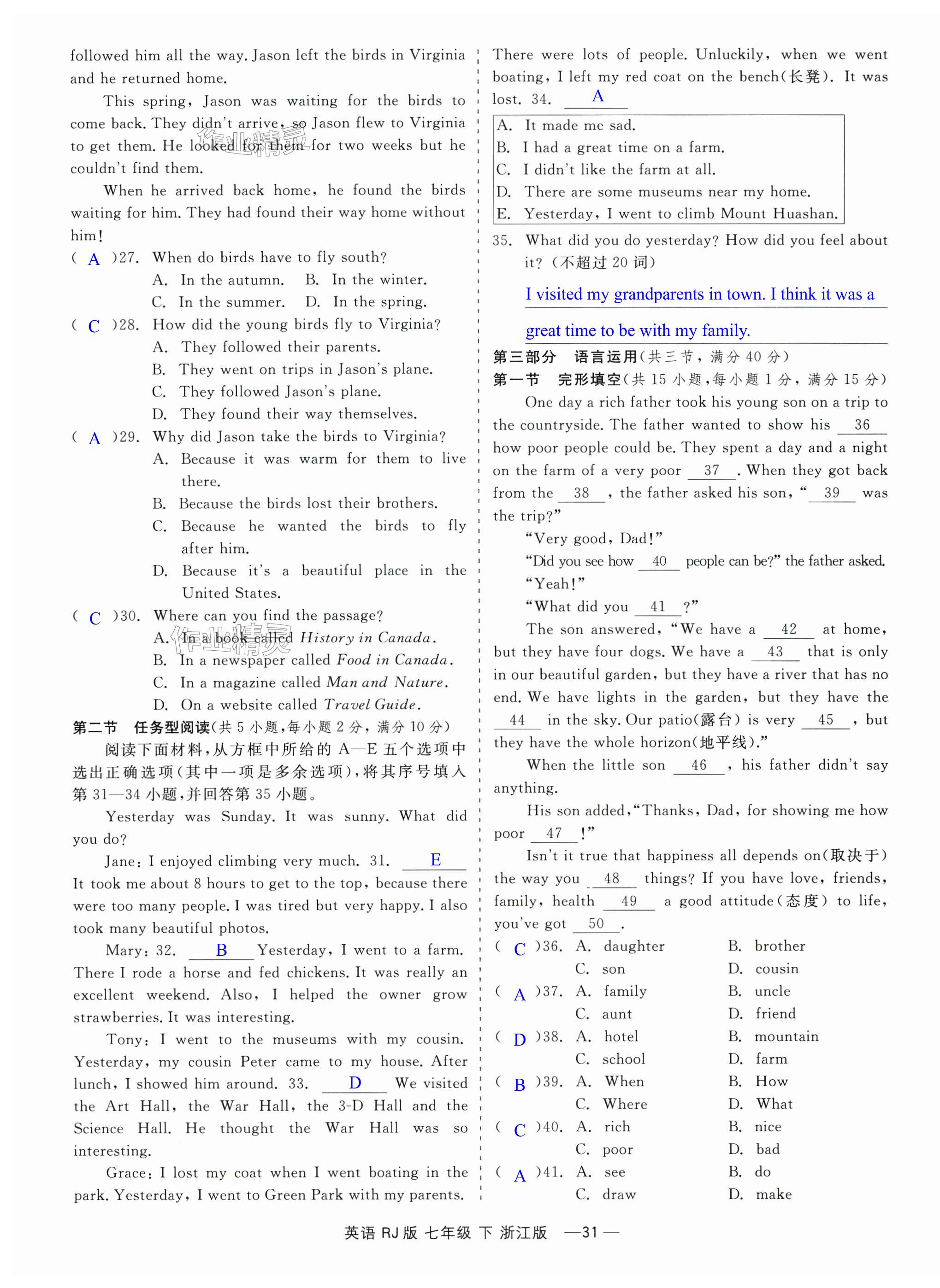 注:目前有些书本章节名称可能整理的还不是很完善,但都是按照顺序排列的,请同学们按照顺序仔细查找。练习册 2025年精彩练习就练这一本七年级英语下册人教版浙江专版 答案主要是用来给同学们做完题方便对答案用的,请勿直接抄袭。