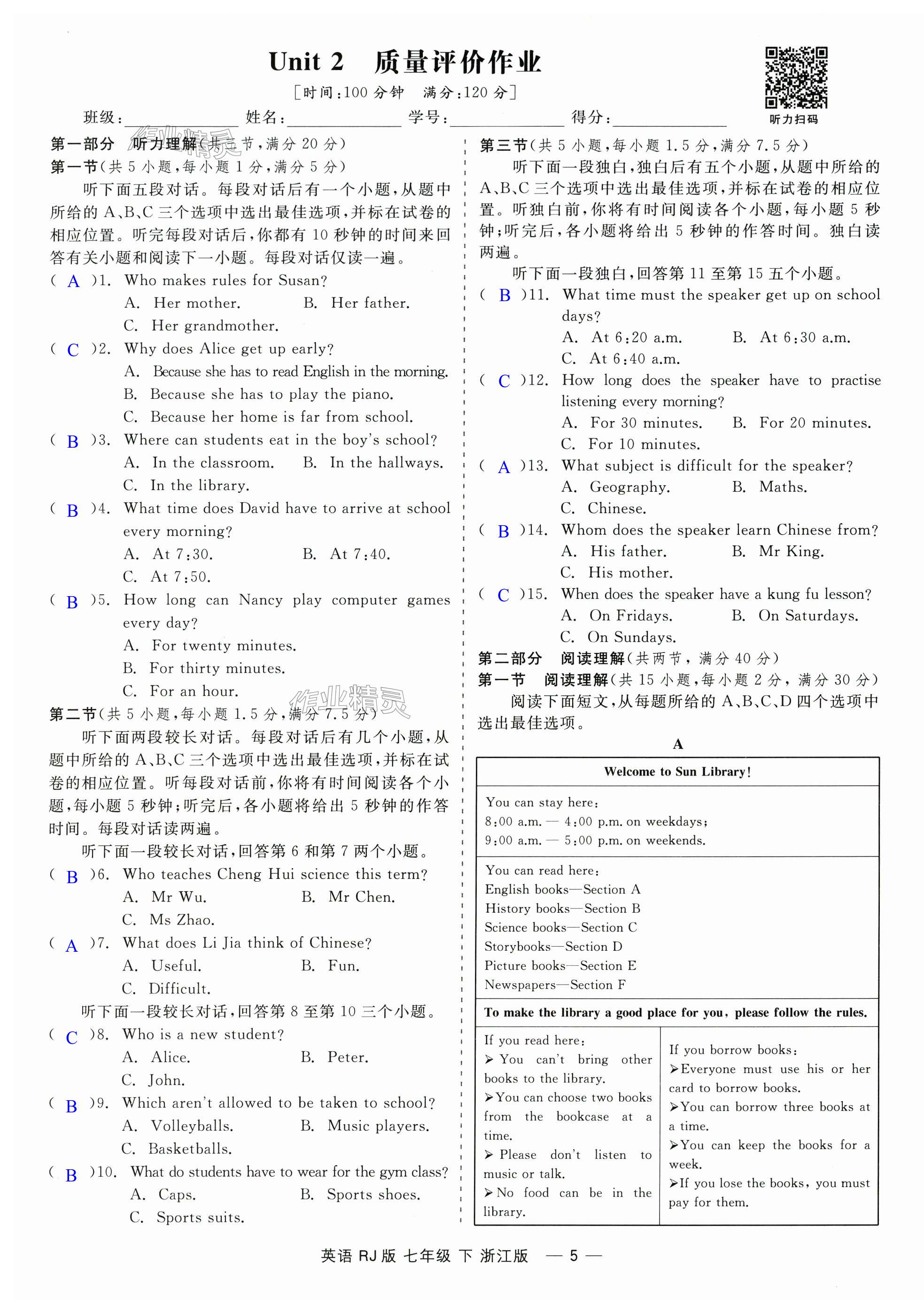 注:目前有些书本章节名称可能整理的还不是很完善,但都是按照顺序排列的,请同学们按照顺序仔细查找。练习册 2025年精彩练习就练这一本七年级英语下册人教版浙江专版 答案主要是用来给同学们做完题方便对答案用的,请勿直接抄袭。
