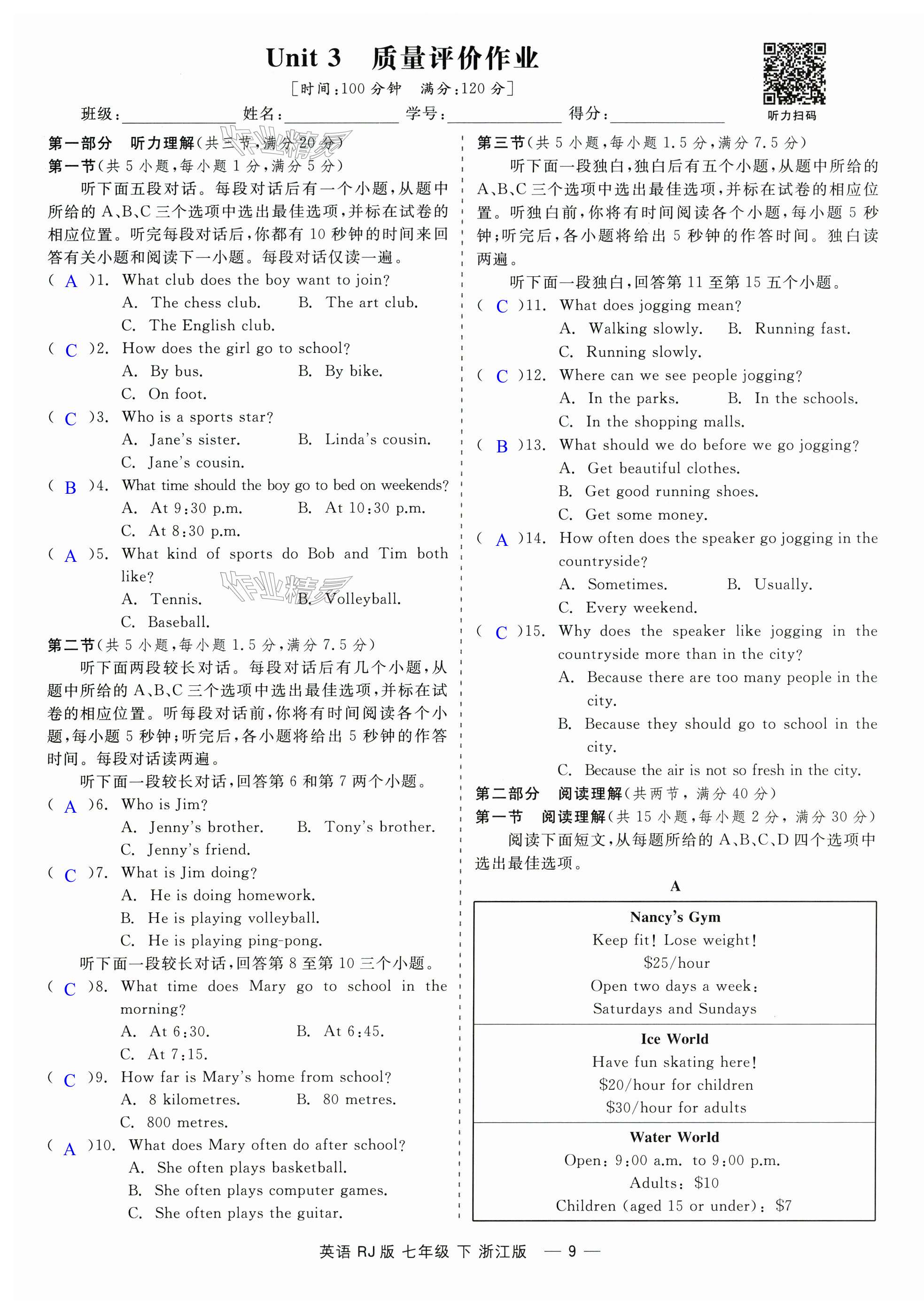 注:目前有些书本章节名称可能整理的还不是很完善,但都是按照顺序排列的,请同学们按照顺序仔细查找。练习册 2025年精彩练习就练这一本七年级英语下册人教版浙江专版 答案主要是用来给同学们做完题方便对答案用的,请勿直接抄袭。