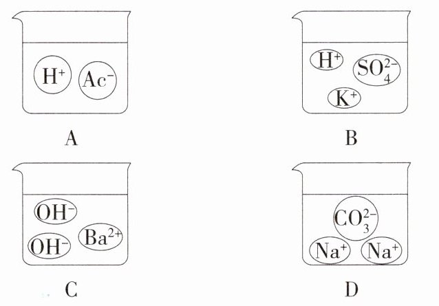1. 教材变式 如图是物质X溶于水发生解离后的微观示意图,其中能说明X是一种酸的是( )