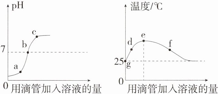 12.数字化实验(2024山东济南商河期末,10,★★☆)室温(25℃)时,用稀硫酸与氢氧化钠溶液反应探究中和反应实验时,测得溶液pH及溶液温度的变化如图所示。下列说法错误的是 ( )
