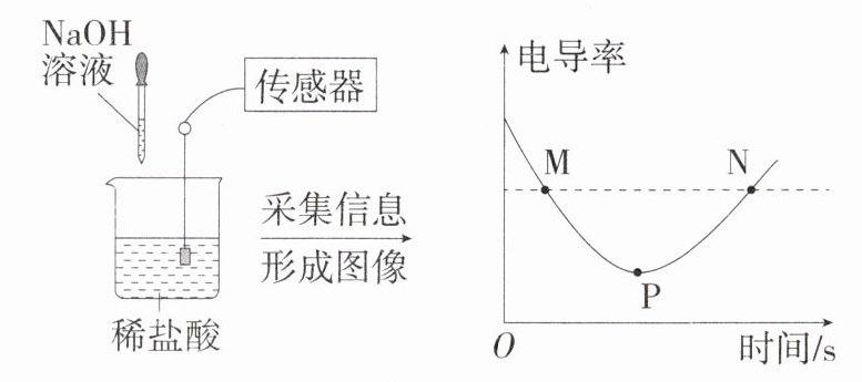 16.学科素养·科学思维 相同条件下,溶液中自由移动的离子浓度越大,溶液的电导率越大,导电性越强。某学习小组用电导率传感器辅助探究氢氧化钠和稀盐酸的反应。下列实验分析不正确的是 ( )
