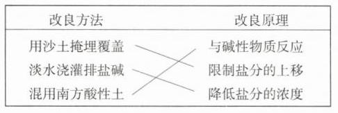 治理:结合所学知识将下列苏打盐碱地土壤改良方法与改良原理连线。