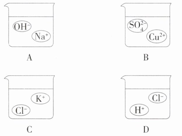 7.(2022 山东聊城中考)下列图示是几种常见物质溶于水后发生解离的微观示意图,其中能使紫色石蕊试液变红的是 ( )