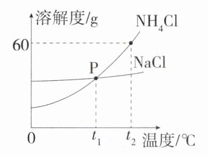 (2)$t_1$℃时,$NH_4Cl$饱和溶液的溶质质量分数________$NaCl$饱和溶液的溶质质量分数(填“大于”“小于”“等于”或“无法判断”)。