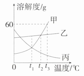 (2) 将$t_3$℃时甲、乙、丙三种物质的饱和溶液分别降温到$t_1$℃,所得溶液的溶质质量分数由大到小的顺序为__________;