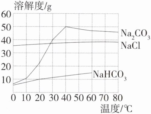 8.(2024山东烟台中考)某种“果蔬洗盐”的主要成分及其质量分数是:氯化钠50%、碳酸钠10%、碳酸氢钠15%。三种物质的溶解度曲线如图所示。下列说法错误的是(C9208003)( )