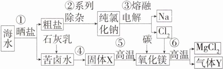 (2)粗盐中含有MgCl₂、Na₂SO₄等可溶性杂质,过程②“系列除杂”所用试剂有NaOH、Na₂CO₃、BaCl₂的溶液,NaOH溶液可以除去______;用Na₂CO₃溶液与BaCl₂溶液除杂时,应先加入的试剂是______。