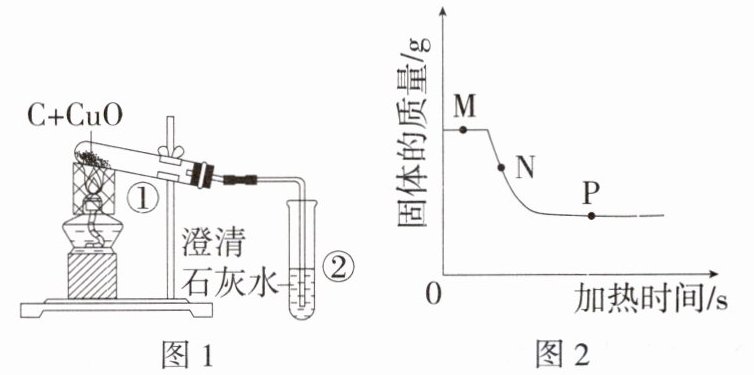 3. (2024重庆潼南期末)按图1所示进行木炭还原氧化铜的实验,实验时①中固体的质量随加热时间的变化如图2所示。下列分析正确的是 ( )