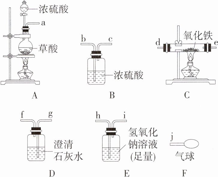 分液漏斗(合理即可)@@H₂C₂O₄$\stackrel{浓硫酸}{\underset{\triangle}{=\!=\!=}}$CO↑ + CO₂↑ + H₂O@@h@@i@@b@@c@@d@@e@@g@@f@@除去二氧化碳@@3CO + Fe₂O₃$\stackrel{高温}{=\!=\!=}$2Fe + 3CO₂@@BC
