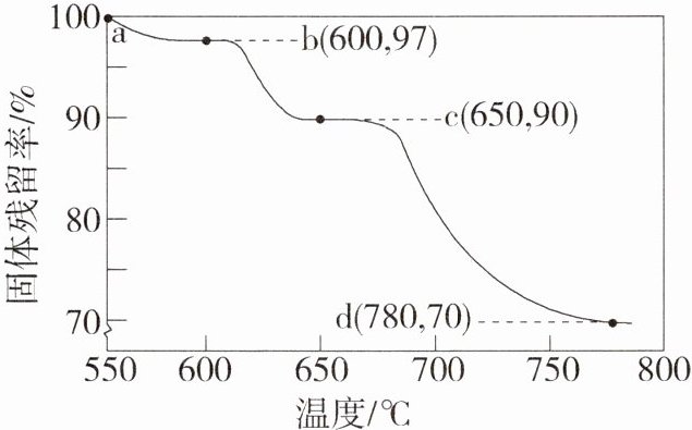 D. bc段发生反应的化学方程式为$\mathrm{F}\mathrm{e}_{3}\mathrm{O}_{4}+\mathrm{H}_{2}\xlongequal{600\sim650{\hspace{0pt}}^{\circ }\mathrm{C}}3\mathrm{F}\mathrm{e}\mathrm{O}+\mathrm{H}_{2}\mathrm{O}$