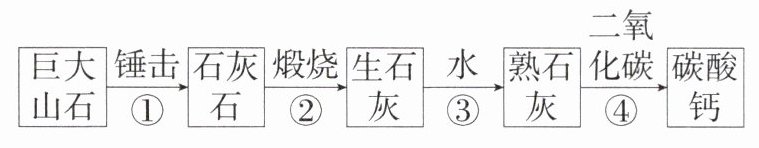 8.跨语文·古诗词(2020 山东枣庄中考,35,★★☆)“千锤万凿出深山,烈火焚烧若等闲。粉骨碎身浑不怕,要留清白在人间。”这是明代于谦的传世之作,蕴含着丰富的化学知识。诗中描绘的烧制熟石灰及其应用过程如图所示: