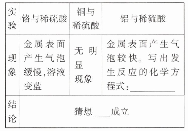 Al、Cu、Cr@@2Al + 3H₂SO₄ = Al₂(SO₄)₃ + 3H₂↑@@二@@AC@@金属与稀酸(稀盐酸或稀硫酸)@@金属与金属的盐溶液