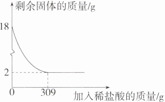 18. (2023山东聊城中考)(5分)已知赤铁矿石的主要成分为氧化铁。某课外兴趣小组的同学将18 g赤铁矿石样品(杂质既不溶于水,也不参加反应)放入烧杯中,并不断加入稀盐酸,烧杯中固体的质量随加入稀盐酸的质量变化情况如图所示。