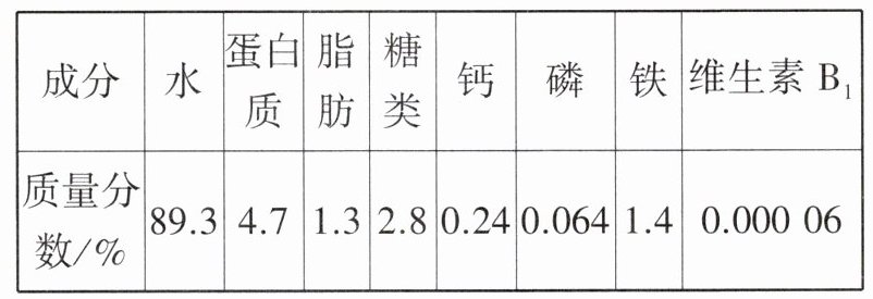 【资料】下表是豆腐中主要成分的平均质量分数: