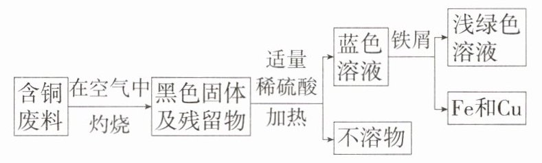 $CuSO_{4}$@@$Fe + CuSO_{4} = FeSO_{4} + Cu$@@将混合物加入足量的稀硫酸中,充分反应后过滤、洗涤、干燥(合理即可)@@塑料绝缘材料在空气中灼烧产生空气污染物(合理即可)