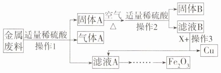 1.(2023 山东济宁中考)某一工厂的金属废料中含有铜、铁、金等金属单质,为回收铜和金并得到氧化铁,工作人员设计了如图所示的工艺流程。