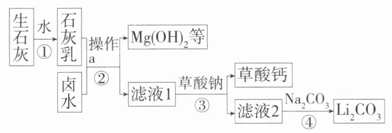 6.(2024 安徽中考)碳酸锂(Li₂CO₃)是制备新能源汽车电池的重要原料。我国盐湖卤水中主要含有氯化锂、氯化钠、硫酸镁等溶质,一种以化学沉淀法从卤水中生产碳酸锂的工艺如图: