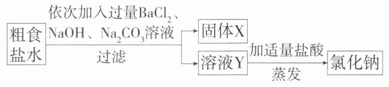 7.(2024 河南中考)粗食盐中含有泥沙和 MgCl₂、CaCl₂、Na₂SO₄杂质。某同学将粗食盐样品溶解、过滤,除去泥沙后,取粗食盐水按以下流程进行提纯。