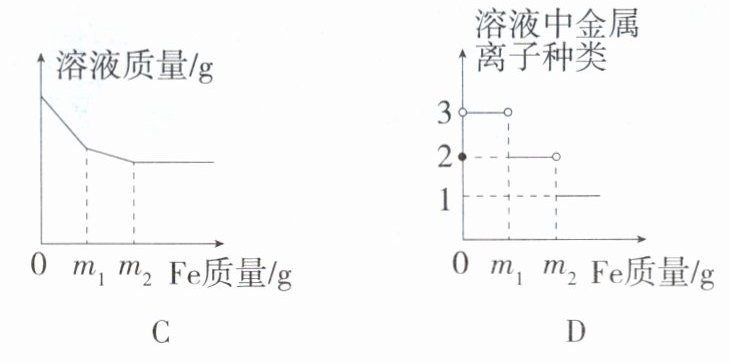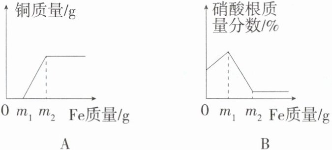 7.(2024山东济宁高新区一模)在一定量AgNO₃和Cu(NO₃)₂的混合溶液中加入铁粉,充分反应,下列相关变化曲线一定不正确的是 ( )