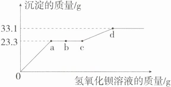 9.(2024云南中考)某溶液可能含有HCl、CuCl₂、CuSO₄中的一种或几种,为了探究其组成,向一定质量的该溶液中逐滴加入氢氧化钡溶液,生成沉淀的质量与所加氢氧化钡溶液的质量之间的关系如图所示。下列说法正确的是 ( )