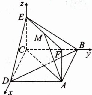 则$M(0,0,1),N(1,1,1),A(1,0,0),B(1,1,0),C(0,1,0),E(\frac{1}{2},1,0)$.