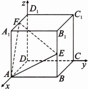 20.[2023·福建泉州晋江第一中学高二月考]如图,在正方体$ABCD - A_{1}B_{1}C_{1}D_{1}$中,以D为原点建立空间直角坐标系,E为$BB_{1}$的中点,F为$A_{1}D_{1}$的中点,则下列向量中,能作为平面AEF的法向量的是( )