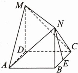 17.[2023·广东珠海实验中学高二月考]如图,四边形ABCD是边长为1的正方形,$MD\perp$平面ABCD,$NB\perp$平面ABCD,且$MD = NB = 1$,E为BC的中点.