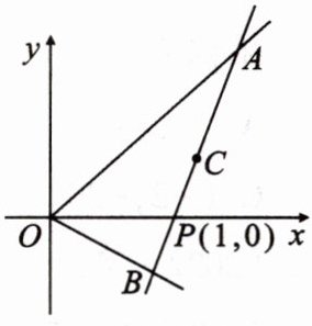 15. 如图,射线$OA$,$OB$分别与$x$轴的正半轴成$45^{\circ}$和$30^{\circ}$,过点$P(1,0)$的直线$AB$分别交$OA$,$OB$于$A$,$B$两点.