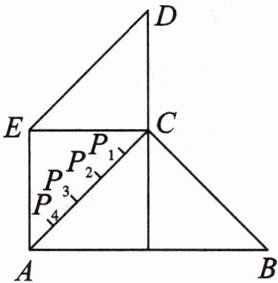 18. 某地居民的居住区域大致呈如图所示的五边形,近似由一个正方形和两个等腰直角三角形组成. 若$AB = 60$ km,$AE = CD = 30$ km,现准备建一个电视转播台,理想方案是转播台距五边形各顶点距离的平方和最小,图中$P_1,P_2,P_3,P_4$是$AC$的五等分点,则转播台应建在 ( )