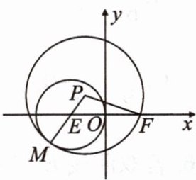 19. [2022·陕西延安黄陵中学高二期中]如图,圆$E:(x + 2)^{2}+y^{2}=4$,点$F(2,0)$,动圆$P$过点$F$,且与圆$E$内切于点$M$,则动圆$P$的圆心$P$的轨迹方程为_______.