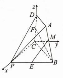 (2)若点 E 为 PB 的中点,点 M 为 AB 上一点,当$\overrightarrow{EM}\perp\overrightarrow{BF}$时,求$\frac{|\overrightarrow{AM}|}{|\overrightarrow{AB}|}$的值.