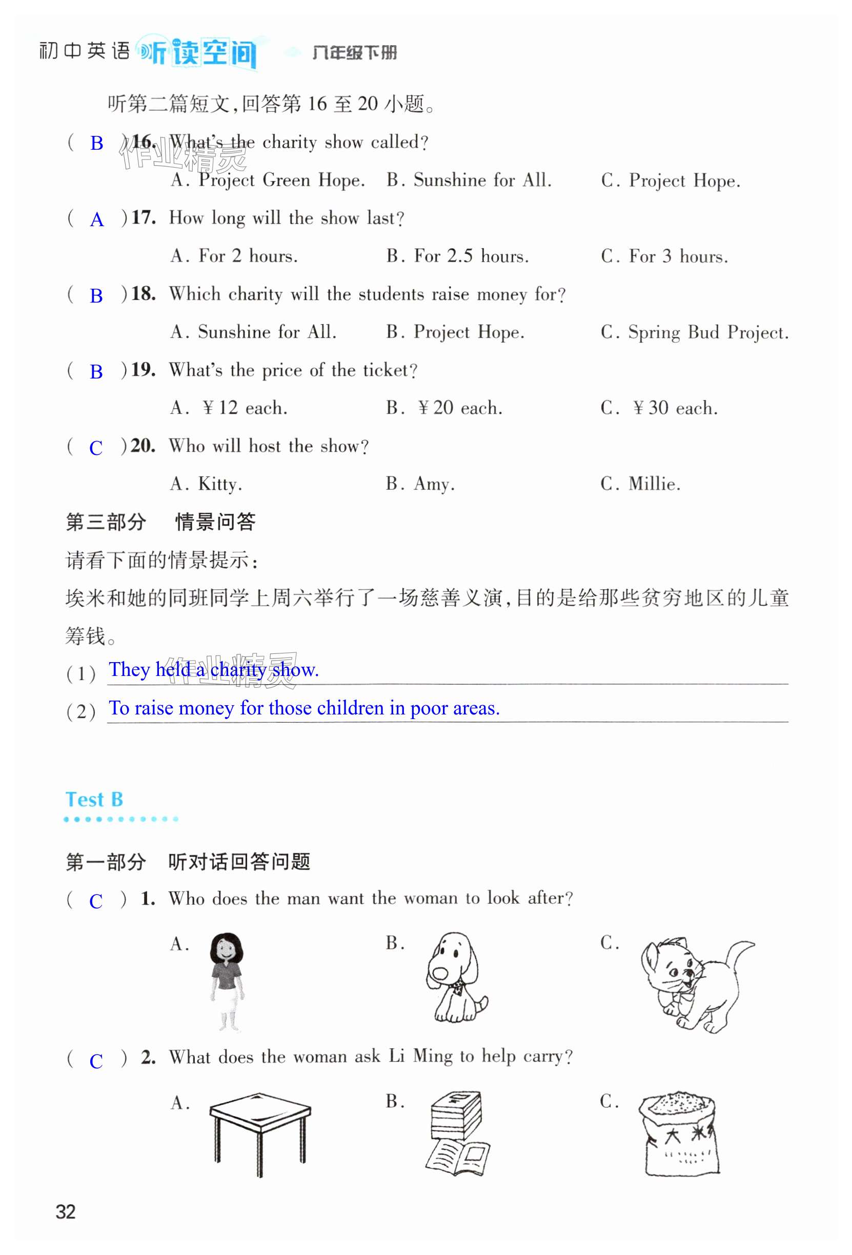 注:目前有些书本章节名称可能整理的还不是很完善,但都是按照顺序排列的,请同学们按照顺序仔细查找。练习册 2025年初中英语听读空间八年级下册译林版 答案主要是用来给同学们做完题方便对答案用的,请勿直接抄袭。