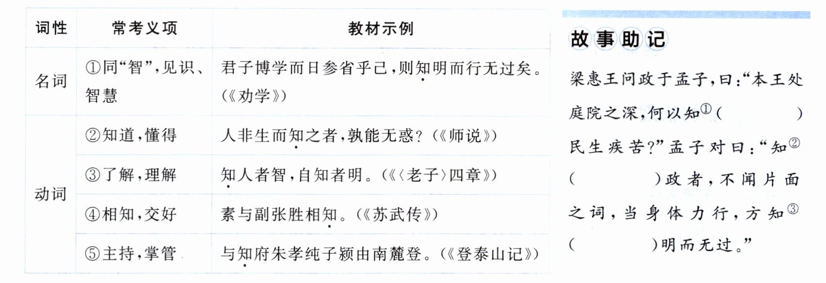 4.①知道,懂得 ②主持,掌管 ③同“智”,见识、智慧