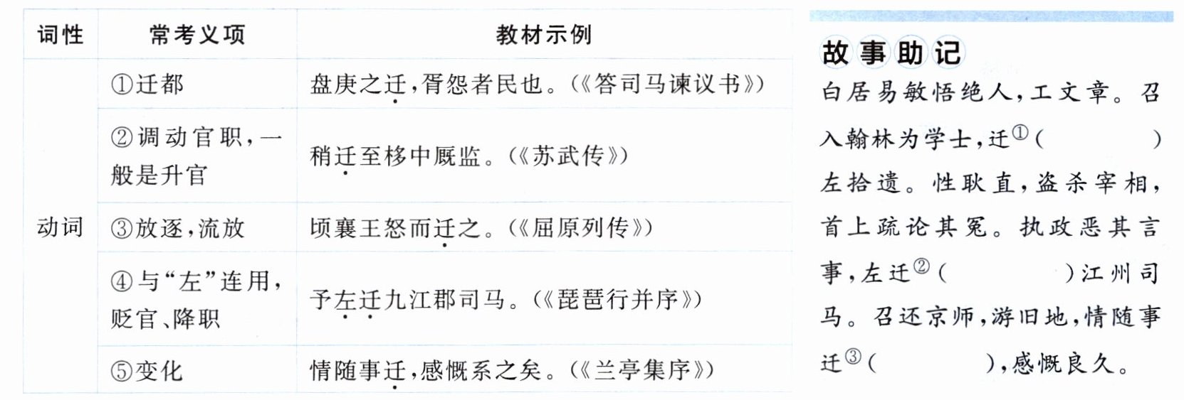 5.①升任 ②与“左”连用,贬官、降职 ③变化