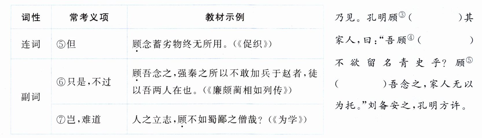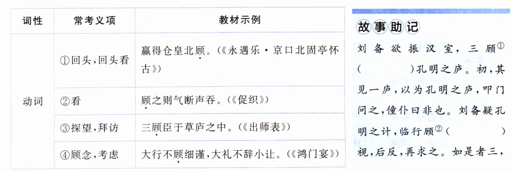 1.①拜访 ②回头 ③顾念,考虑 ④难道 ⑤只是,不过