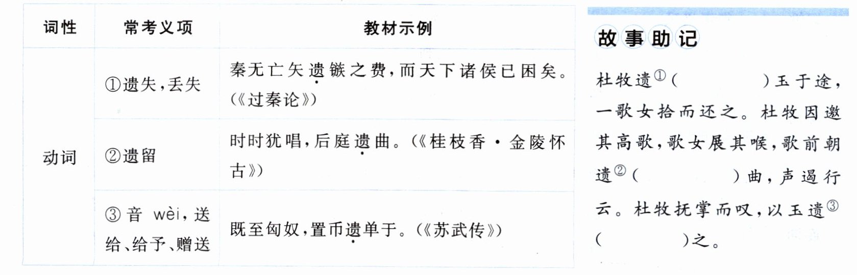 5.①遗失,丢失 ②遗留 ③送给,给予,赠送