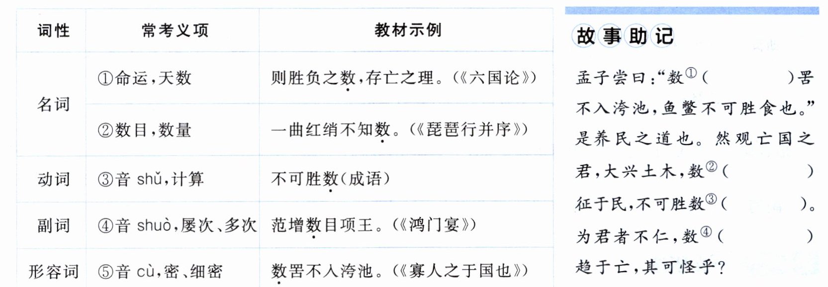 3.①密 ②屡次,多次 ③计算 ④命运,天数